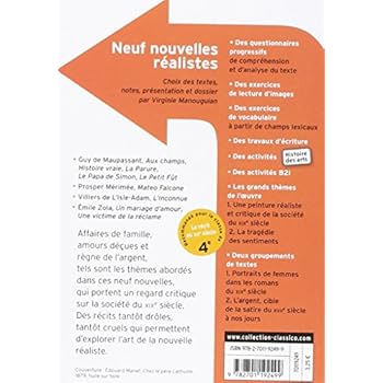 Neuf nouvelles en tout, dont : cinq de Maupassant, une de Mérimée, une de Villiers de l'Isle-Adam, et deux de Zola.J'ai bien aimé ces nouvelles, les histoires sont courtes, et agréables à lire.D'ailleurs, je n'avais jamais lu Mérimée avant, et je ne connaissais pas Villiers de l'Isle-Adam, à travers cesnouvelles, j'ai pu découvrir ces auteurs.
